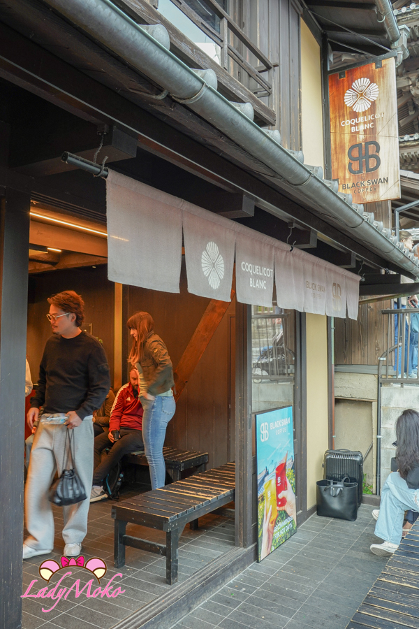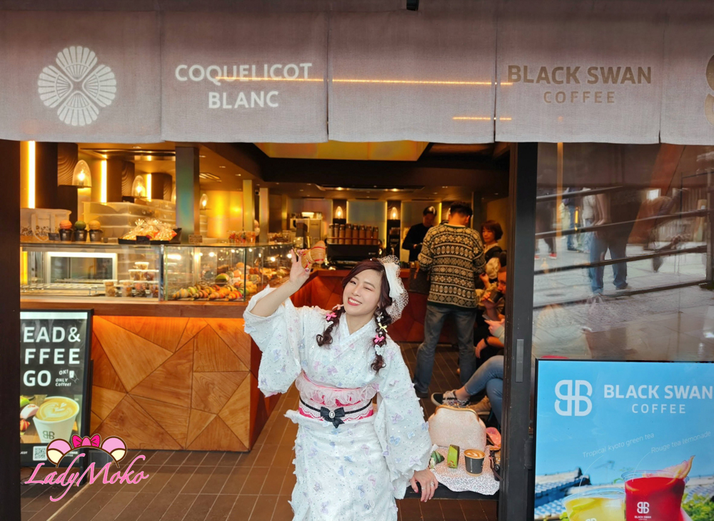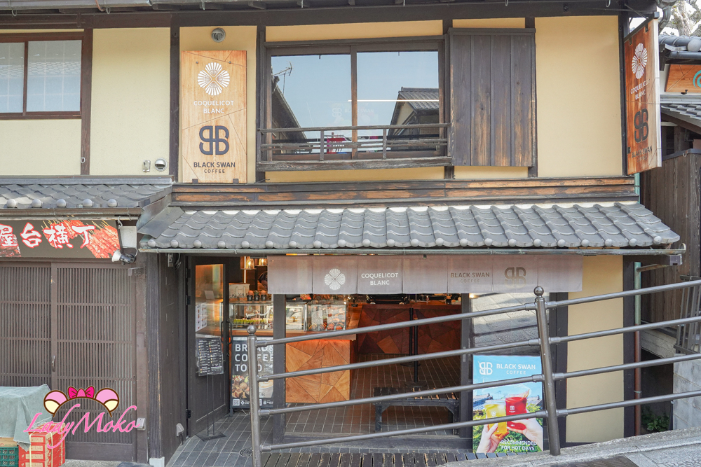 「Coquelicot Blanc コクリコブラン」就位在清水寺附近一代、「八坂之塔」正旁邊,不論是不是假日時間,總是有著滿滿的人潮,平日可能要早上 10 點來才會比較沒人,我們第一次是穿著和服來訪,後來旅程最後一天一早又跑來拍照,才無意間路過完全沒人的「コクリコブラン」,就隨手又拍了一張。