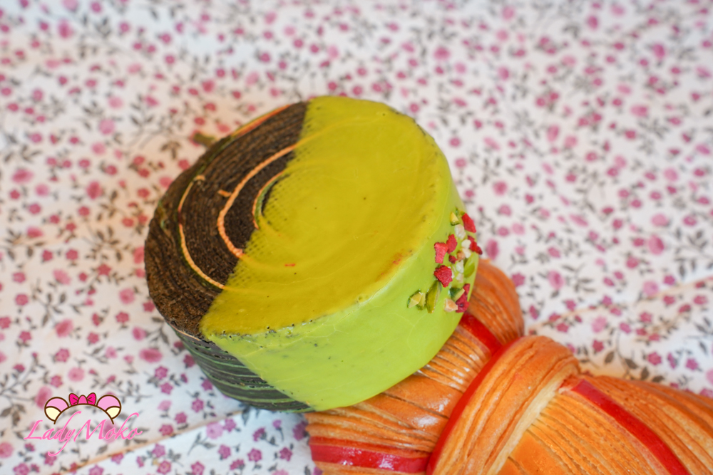 可頌千層的層次感也和前面那款抹茶可頌一樣,還有不少進步空間,屬於「好看勝過好吃」的可頌麵包。