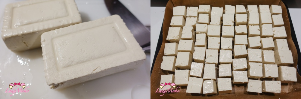 ⚡Tips 毛毛小撇步:不要把豆腐直接放在盤子上拿去冷凍,一定要墊一張烘焙紙,不然冷凍後會黏在盤子上拔不下來喔!