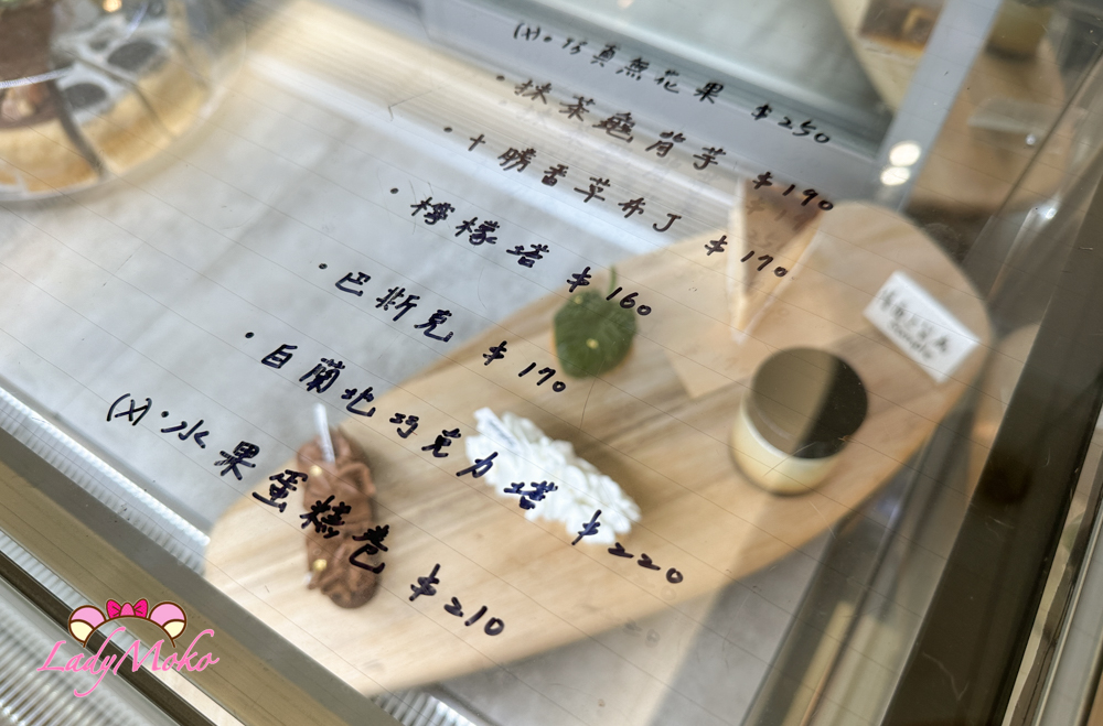 🍰 當天有的甜點品項會寫在冷藏櫃的玻璃上面,有實品擺在冷藏裡面提供參考。