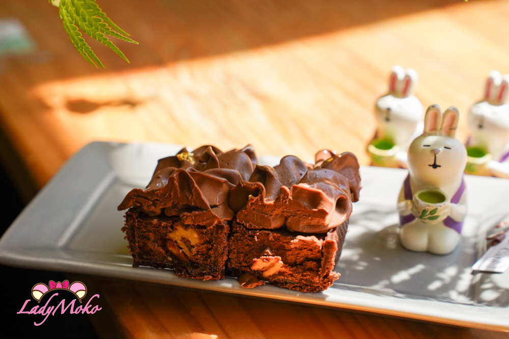 這款巧克力甜點上頭擠滿了巧克力奶霜,擠花的方式相當有創意,在外面也比較少見,看起來很討喜。
