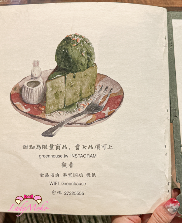因為我們先吃過東西才來的,就來「GreenHouse 早午餐」吃個下午茶,我們各點了一杯飲料和一份甜點。