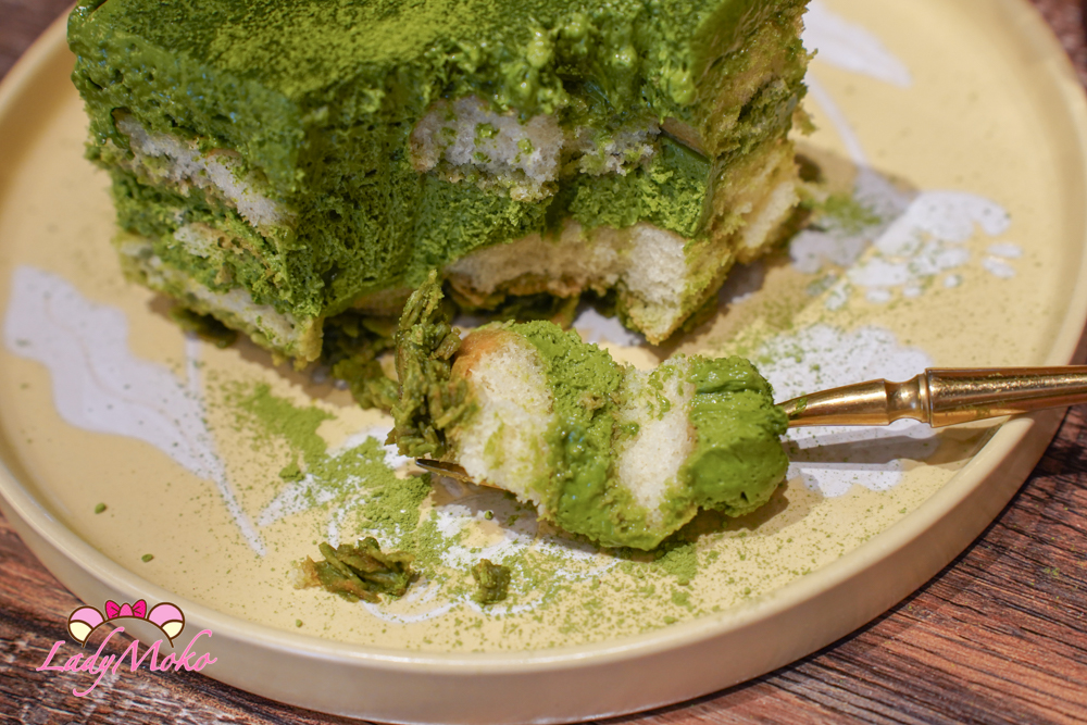 每一層抹茶提拉米蘇都濃郁香滑,上面還灑滿了抹茶粉,整體抹為十足。唯一有點小可惜的是,手指餅乾不是抹茶口味,不過反而讓整體色調更有層次感,視覺上相當吸睛。