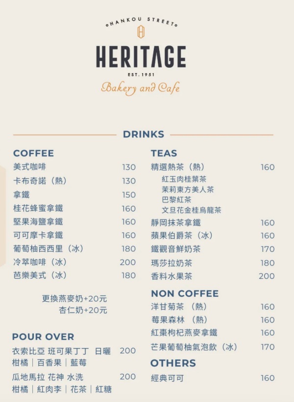 Heritage Bakery & Cafe 推薦餐點與介紹