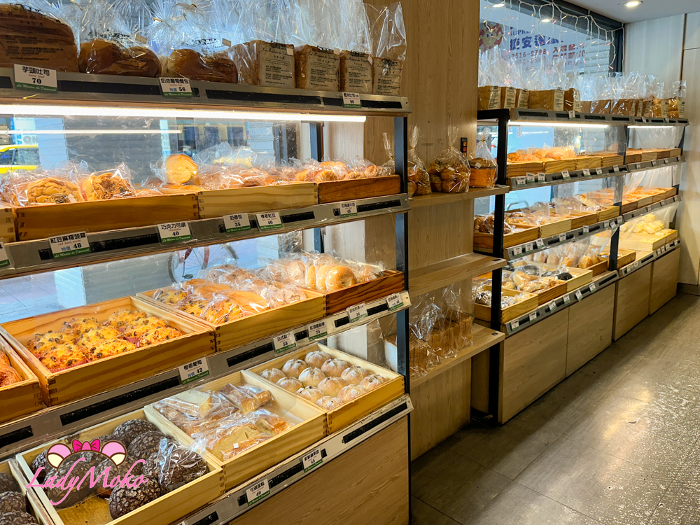店內是典型的傳統西點麵包店風格,麵包陳列在架上可自行取用。