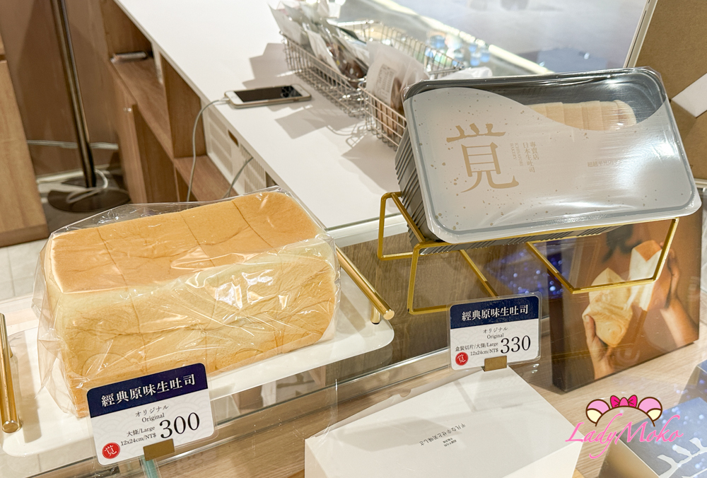 相當可愛的正方形生吐司,上面還烙印了「一覺吐司」品牌的「覺」字。