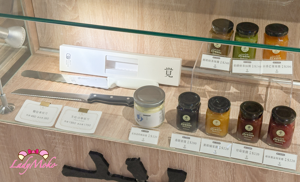 除了吐司外,也販售吐司專用切片的刀子與各式抹醬。