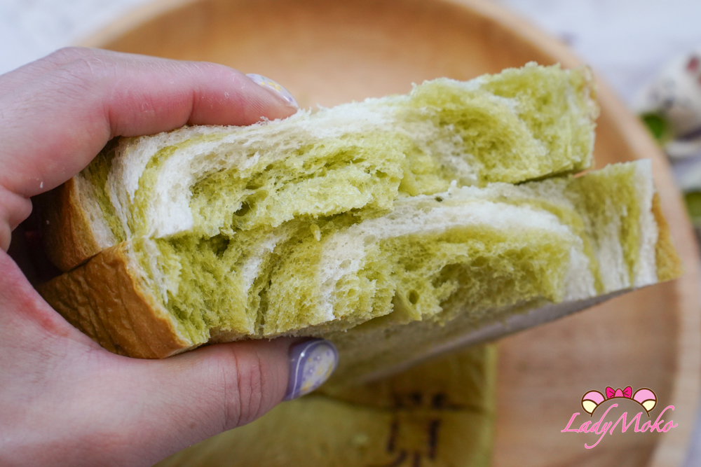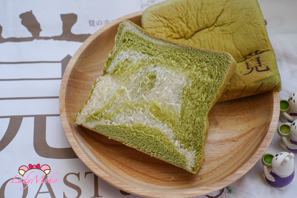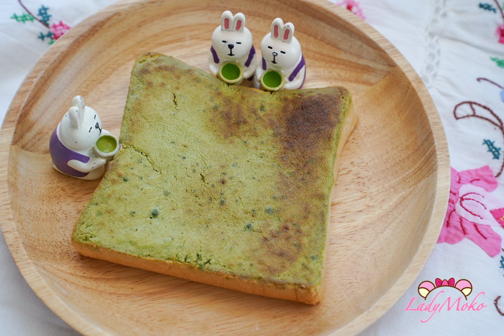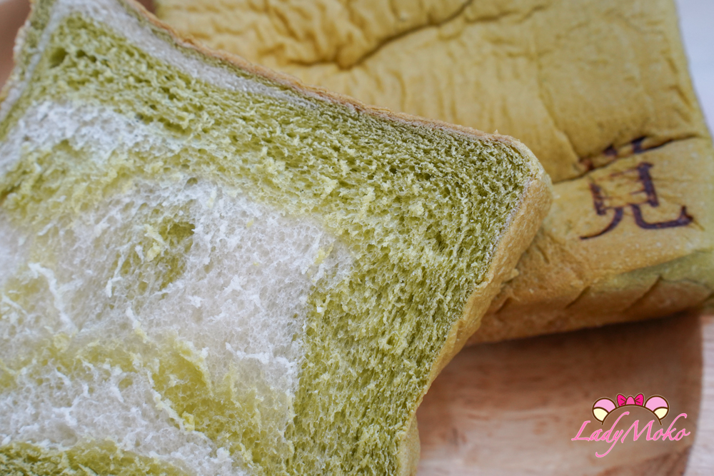 這款是以經典原味生吐司為基底,上層抹上濃抹風味的抹茶奶酥。