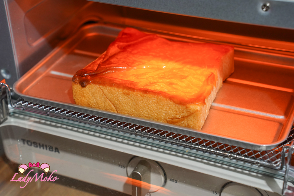 這款和「特濃抹茶奶酥生吐司」一樣,購買時為冷凍品,回家只需要放冷凍保存,想吃時直接放進烤箱回烤一下即可。