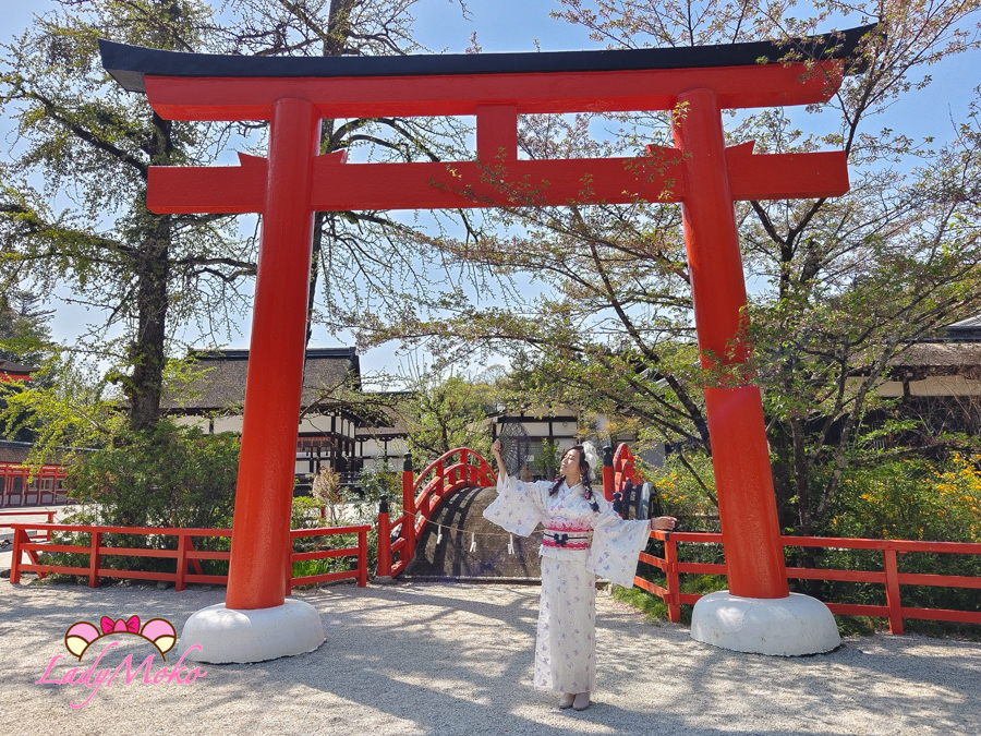 「河合神社」的門口就好好拍,我們穿著和服拍好姐妹合照(眼睛冒愛心)。