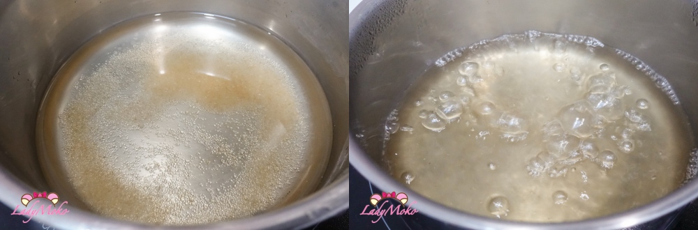 8. 再來製作蘭姆酒糖漿,將砂糖與水放在一起煮滾後就觀火,砂糖溶化即可。