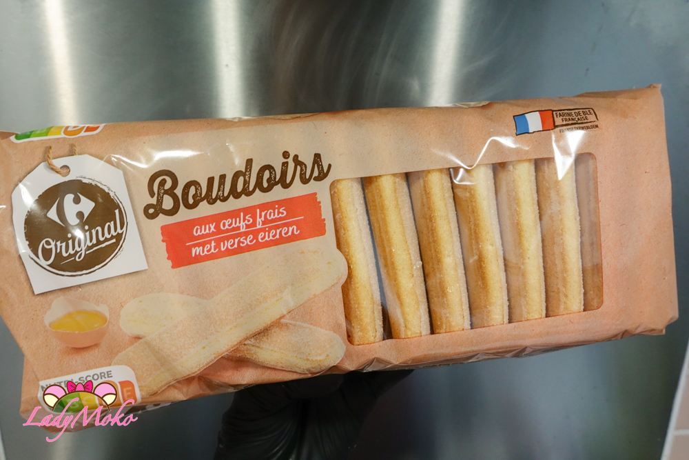 手指餅乾的部分我偷吃步的直接買現成的,在家樂福買的這款就是中規中矩的手指餅乾。