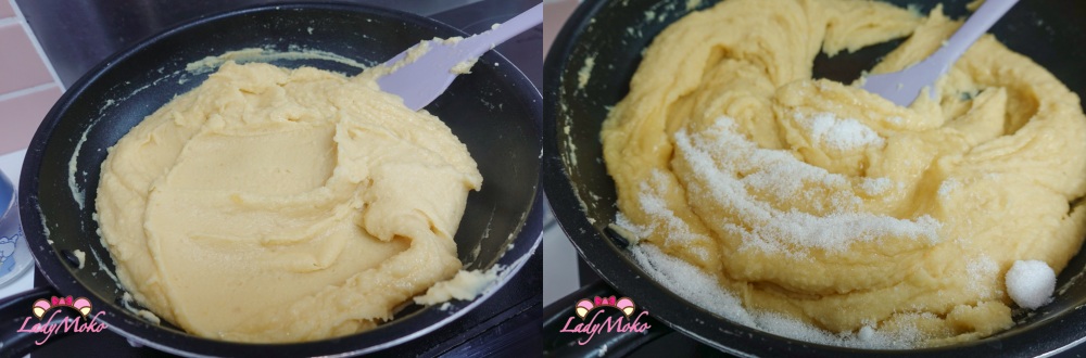 11. 記得加入砂糖一起翻炒,加入的時間隨時都可,別太晚加入避免不好攪拌均勻。
