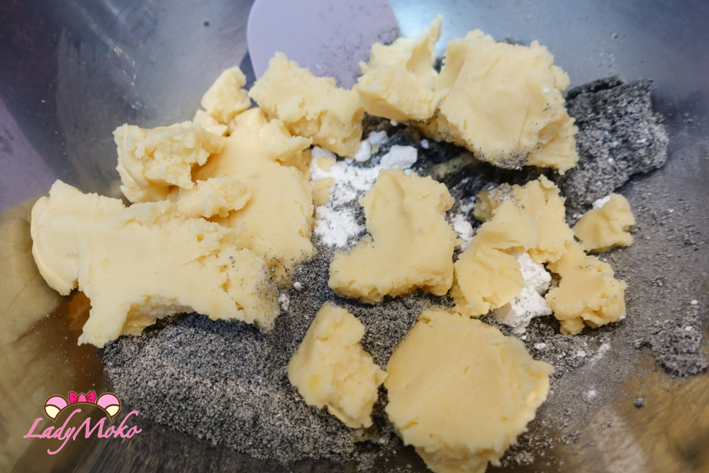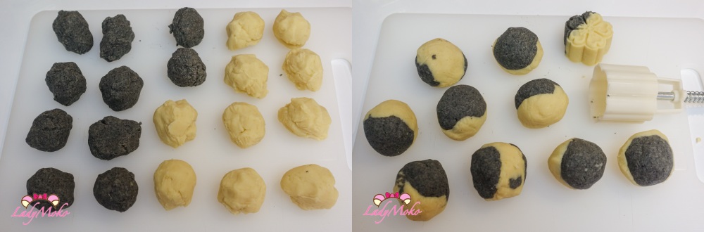 2. 可以做成整顆都是黑芝麻口味的,也可以想毛毛一樣做成兩種口味對半,將芝麻口味的做成 25 克一球,原味的也是 25 克一球,然後隨意地將兩種口味一起揉成同一顆球。