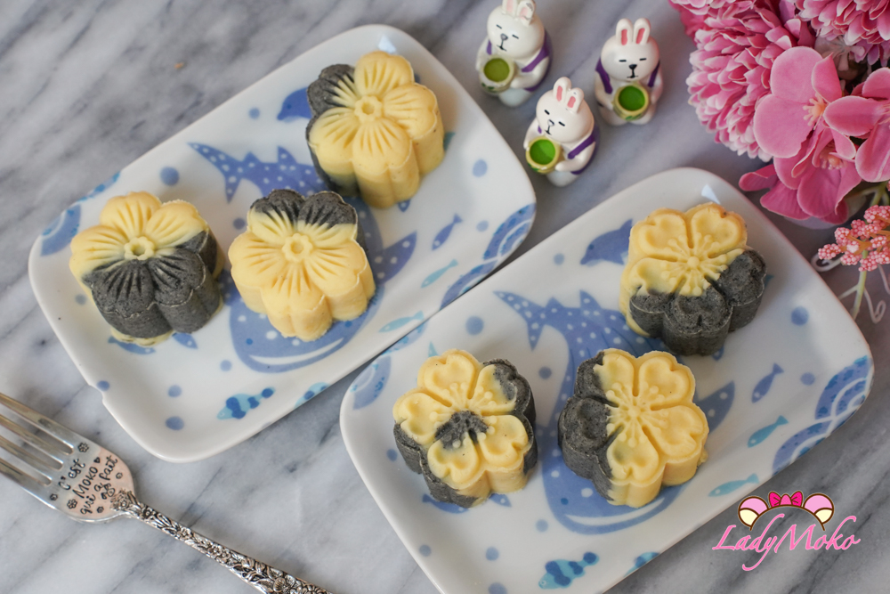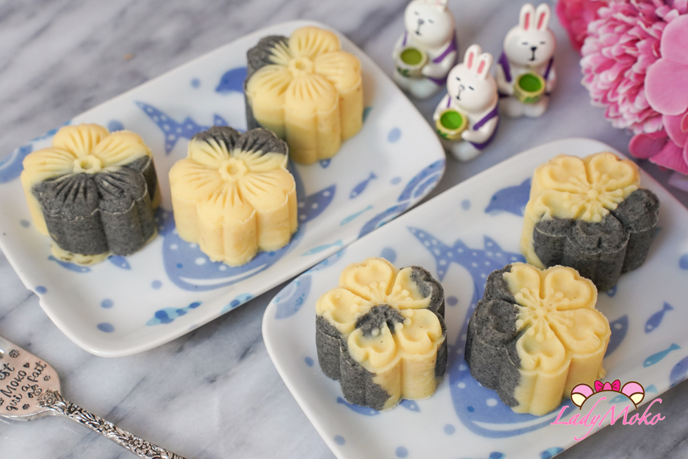 Black sesame flavor: 10 g black sesame sugar powder + 40 g plain mung bean dough