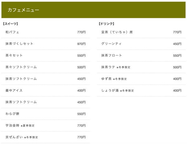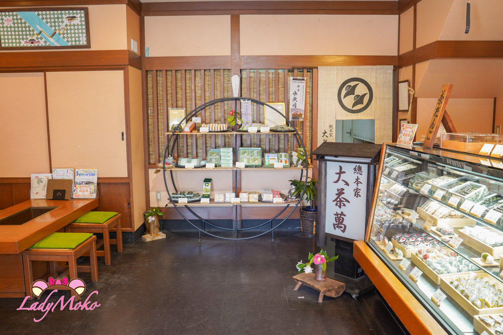 総本家 大茶萬」有提供三組雙人座位與一組4人座位,可以坐著品嚐老舖的手作和菓子,店內也有提供幾款搭配抹茶飲品的套餐。