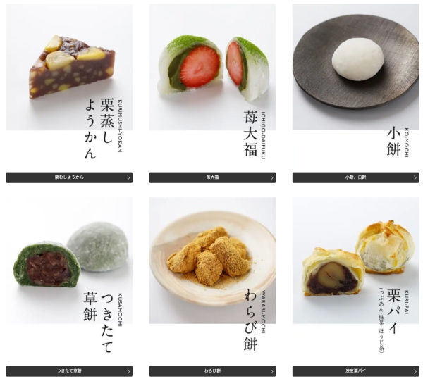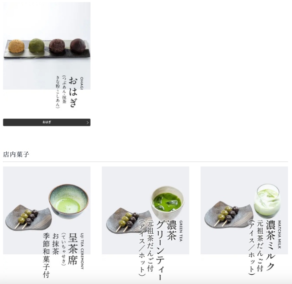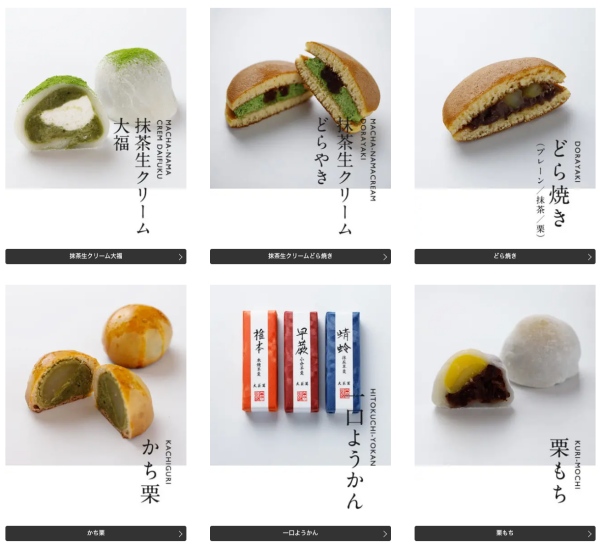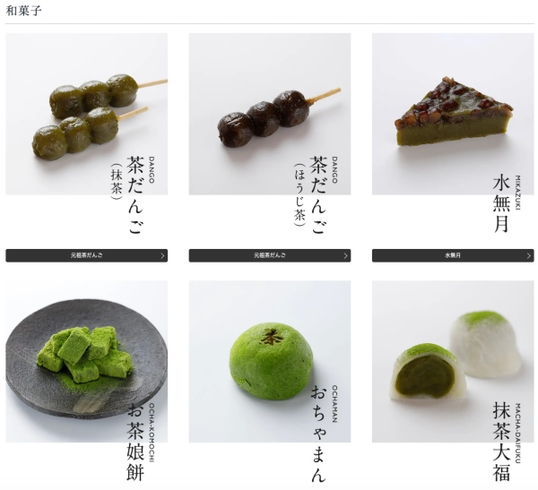 和菓子品項超級多元,包括糰子、水無月、茶娘餅、抹茶小饅頭、大福、銅鑼燒、羊羹、蕨餅、草餅等等,經典款的日式甜點幾乎全包了!而且每個品項的介紹,包含食材使用與保存期限,在「総本家 大茶萬」的官網都有標示清楚,非常用心在經營網路的一家百年老店。