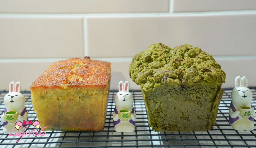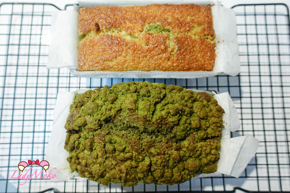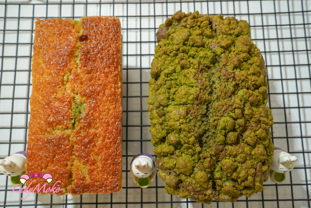 因為毛毛我想吃酥頂磅蛋糕,所以另外做了抹茶酥粒(crumble),分別灑在兩款磅蛋糕上。