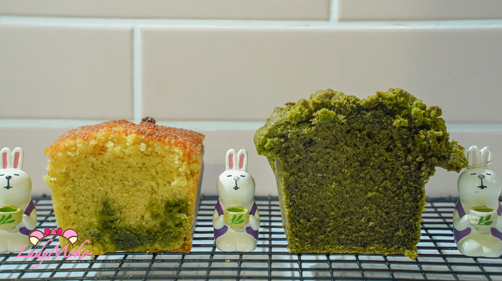 🍵抹茶:完全沒有檸檬口味大量出油的現象,麵糊膨脹得非常高。