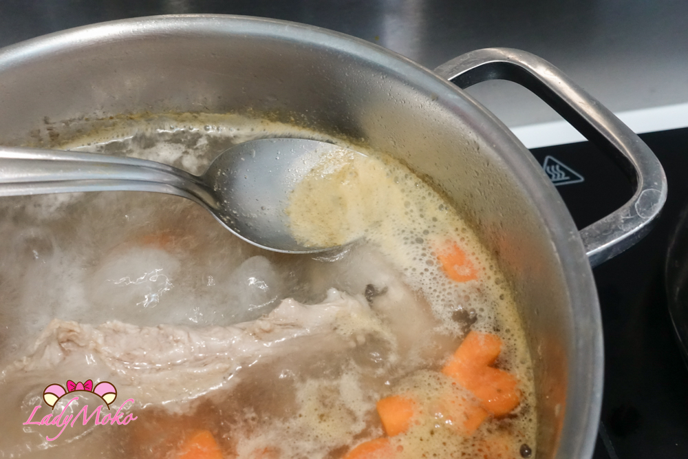 11. 如果想要湯頭乾淨一點,可以用湯匙或是細細的濾網撈掉上面漂浮的肉末。