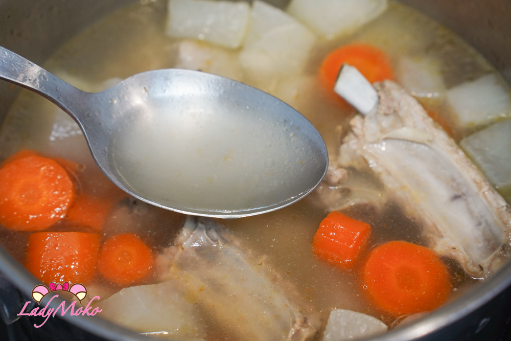 白蘿蔔加好加滿的排骨湯,真的鮮甜到不行。