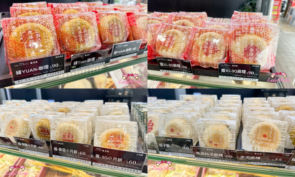傳統糕餅的口味很多,像是咖哩、麻糬、芋泥、香菇、棗泥、紅豆、芝麻等等,也有綠豆椪、蛋黃酥、咖哩餃、千層蛋塔等等,價格介於 50-90 元之間,所有口味皆是單個包裝,更確保可以保存好新鮮度。