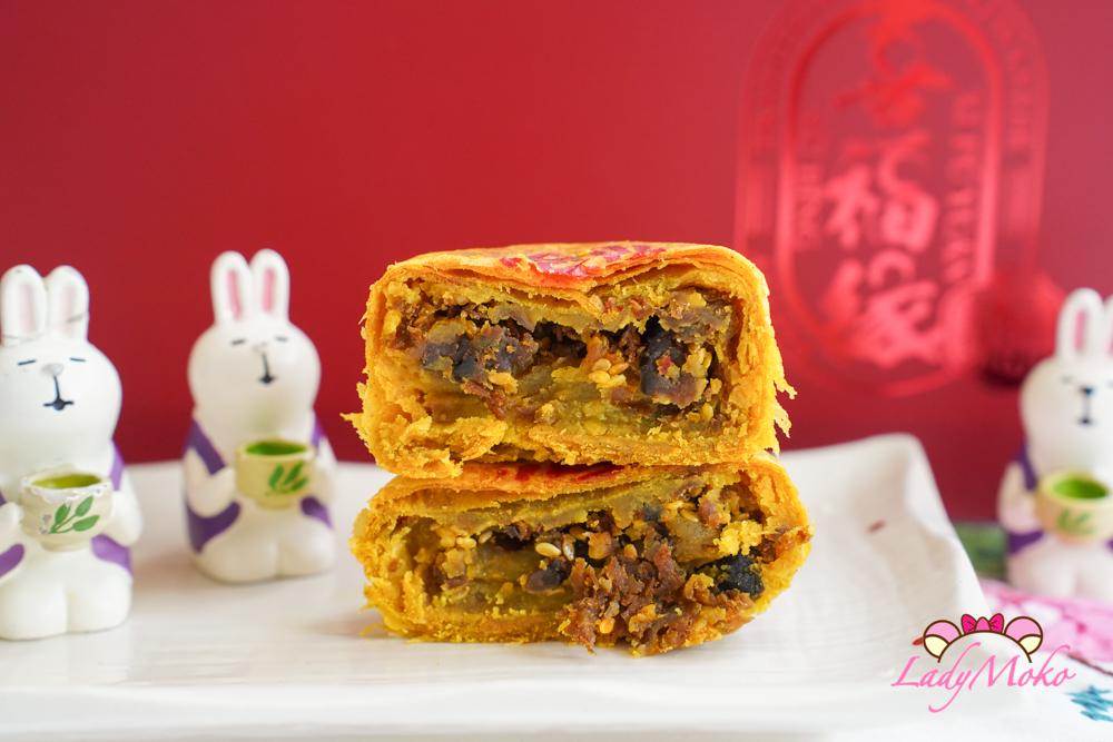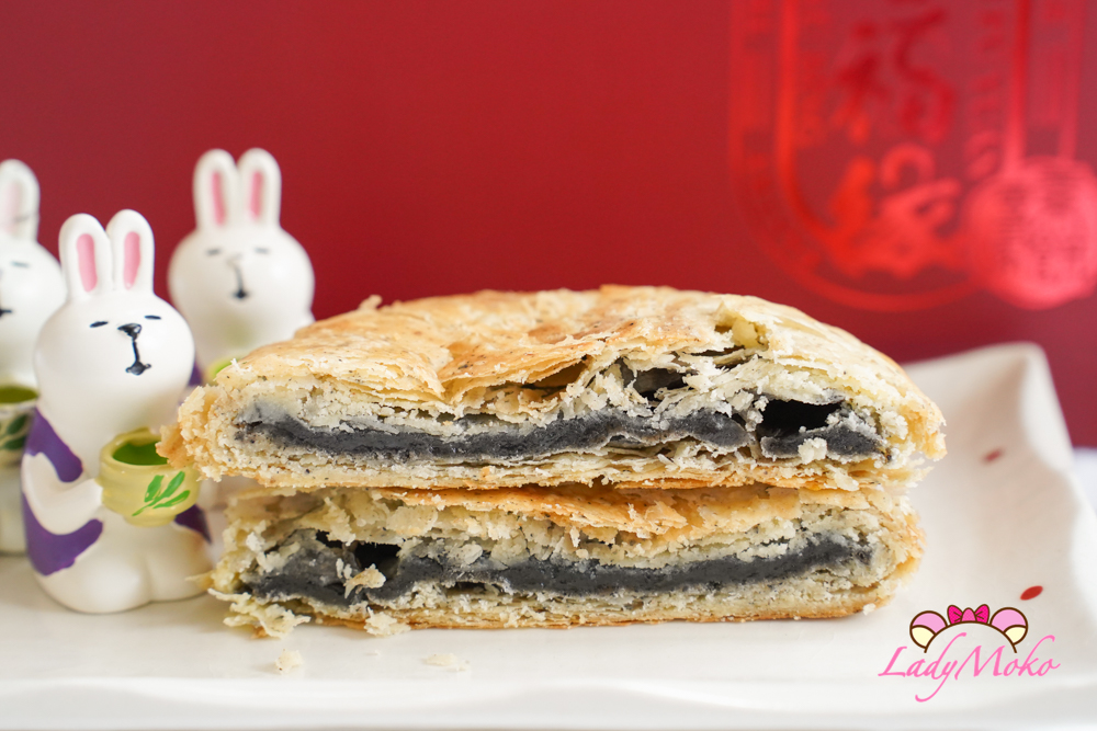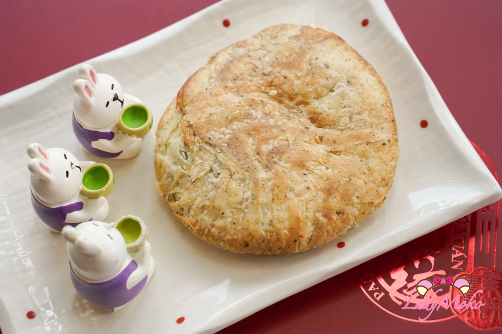 另外還滿了一款造型比較不一樣的「福緣餅」,吃這種餅必掉屑,酥香不油膩,芝麻餡與酥皮是絕佳比例,黑芝麻香氣十足,甜度剛好。