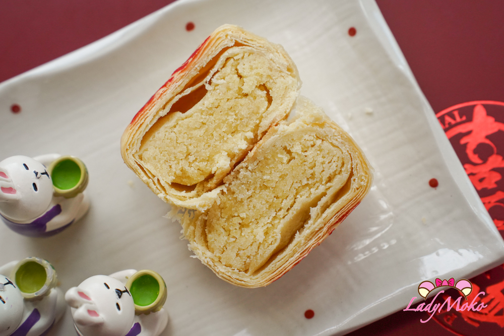 吃起來香氣濃郁、酥皮層次分明又漂亮,口感細緻不油膩也不乾口,甜度拿捏得恰到好處,就連長輩吃了也不會覺得太甜,綠豆餡更是細緻綿密,好吃!