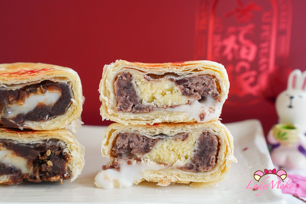 這款「紅豆奶酥麻糬」好超值,一個餅裡面就有三種不同的內餡,紅豆餡略乾但是味道是好的,搭配軟Q的麻糬與甜而不膩的奶酥,好好吃!所有口味裡面最喜歡的一顆。